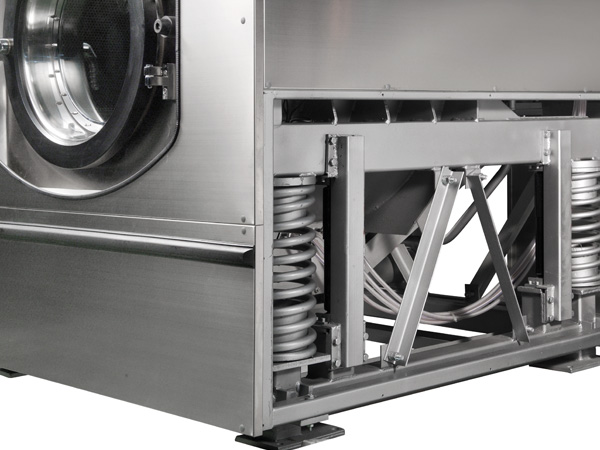設備采用力學下懸浮彈簧防震結構,噪音低,洗滌高脫過度平穩(wěn),無需打地基。